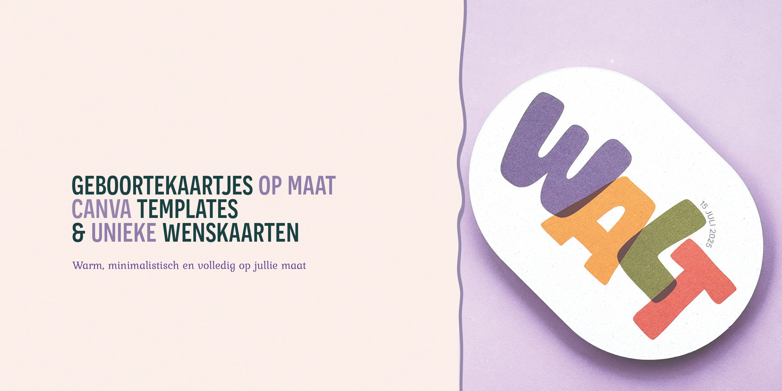 Geen standaard ontwerp, maar een gepersonaliseerd geboortekaartje dat warm, minimalistisch en helemaal “jullie” voelt.